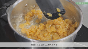 7.打豆を取り出し、蜜だけをとろみがつくまで煮詰める
